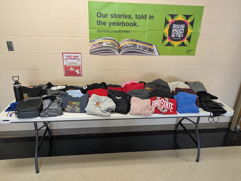 Parents, while you are here for parent-teacher conferences this week, check out the lost and found located in the elementary lobby.